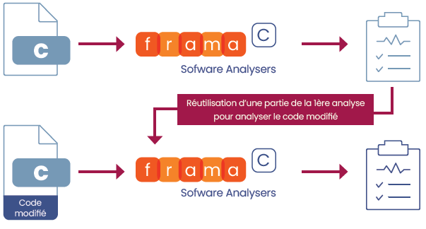 The second technique speeds up the search for loop invariants (logical properties of the code). Invariants discovered during a previous analysis are reused as starting points so that invariants can be found more quickly in the new version of the code. Initial experiments on open-source code with a public modification history showed that incremental code analysis with Frama-C reduces analysis time by a factor of 1.5x to 28x, with an average improvement of 7.83x. The experiments also revealed very little variation in the analysis results, with no negative impact on reliability. These techniques are, therefore, compatible with implementation in continuous integration workflows.