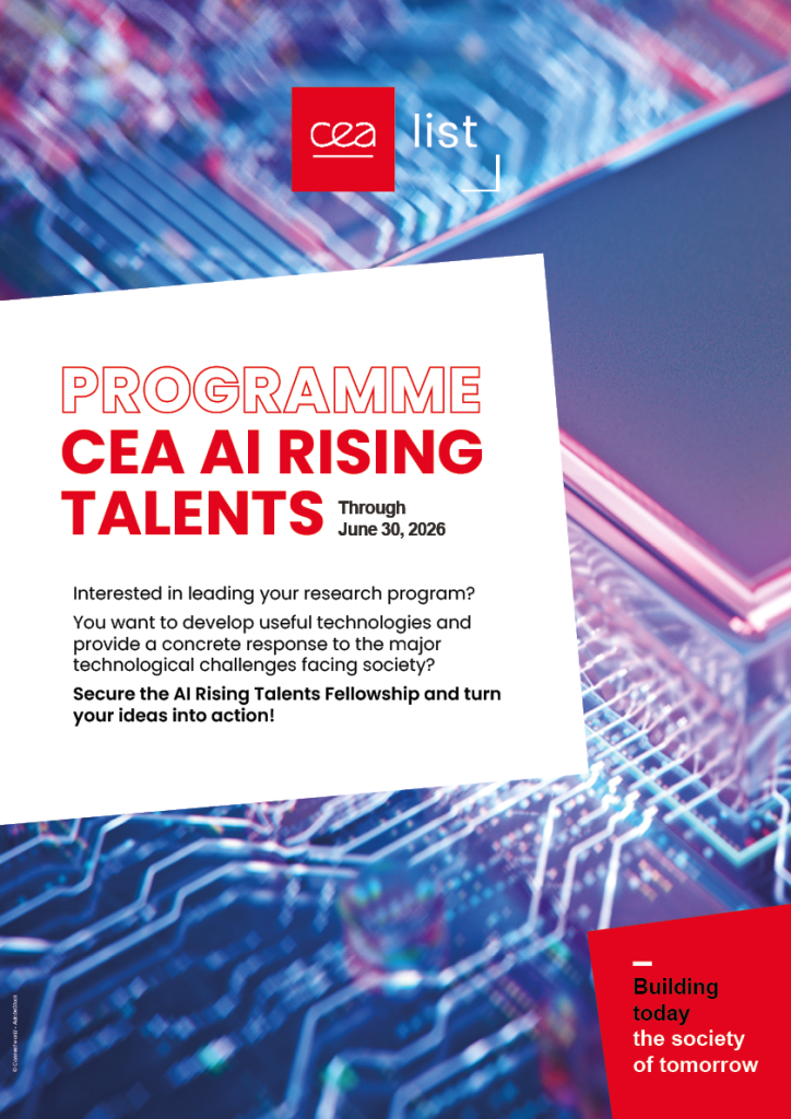 The CEA AI Rising Talents program offers a great opportunity to put your ideas into practice and to lead your own research project for the benefit of industry and society. This program is part of the PEPR AI and complements the call of chairs of attractiveness of the national priority research programme in AI, targeting the technological and strategic challenges of the CEA-List institute.
