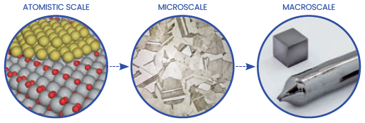 In our research on complex materials, we used multi-scale approaches that establish a relationship between a material’s atomistic behavior and macroscale properties. The goal is to bridge the gap between the atomistic scale, which is governed by interatomic forces, and the macroscale, with a view to modeling materials and their defects accurately.