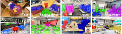 Les méthodes de segmentation sémantique 3D actuelles proposent soit d’identifier les objets correspondant à un unique concept sémantique recherché par l’utilisateur (segmentation en vocabulaire ouvert ou OV-Seg), soit de s’adapter au contenu de la scène en découvrant plusieurs concepts sémantiques (segmentation sémantique non supervisée ou USS).