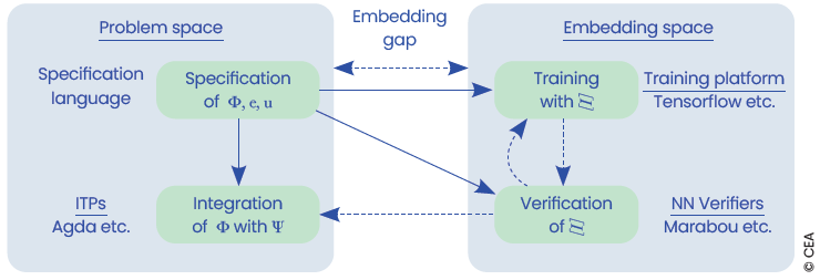 Toutefois, l’intégration de réseaux de neurones dans les systèmes critiques rebat les cartes. Leurs modalités de conception les rendent difficiles à décrire formellement et donc à vérifier. En particulier, Python, le langage de programmation le plus utilisé pour la conception des réseaux de neurones, est très difficile à analyser. De plus, les réseaux de neurones ne sont constitués que de successions de très gros calculs algébriques, sans lien apparent avec le résultat qu’ils fournissent.