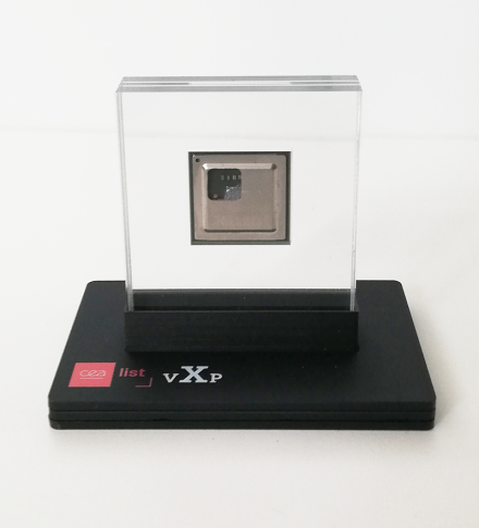 Le CEA-List a conçu une puce silicium (ASIC) dédiée à exécuter des tâches d’IA localement et de manière extrêmement efficace. Avec une consommation inférieure à 25 mW, elle apporte un gain en consommation d’un facteur 1000 par rapport à des circuits du commerce.